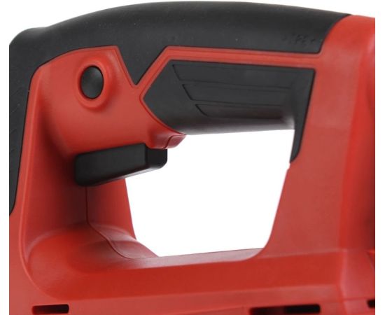 Прорезиненная рукоятка для крепкого хвата, удобный параллельный упор позволяет выполнять прямые и круговые распилы, могут использоваться пильные полотна толщиной до 1.7 мм.