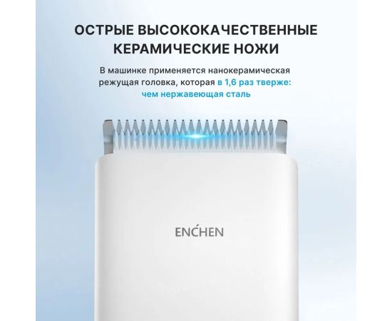 Поддерживается быстрая зарядка, 100% заряда — за 1 час. Время автономной работы — 90 минут. То есть в течение 3 месяцев можно пользоваться триммером по 30 минут. В работе Enchen Boost бесшумна, а все благодаря режущей головке из керамики, уровень шума — менее 55 дБ.