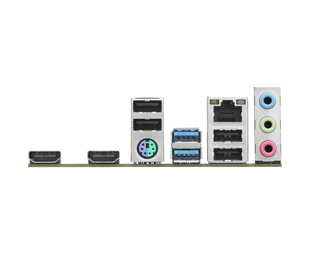 PS/2, 4 x USB 2.0, 2 x USB 3.2 Gen1, 2 x HDMI, RJ-45
