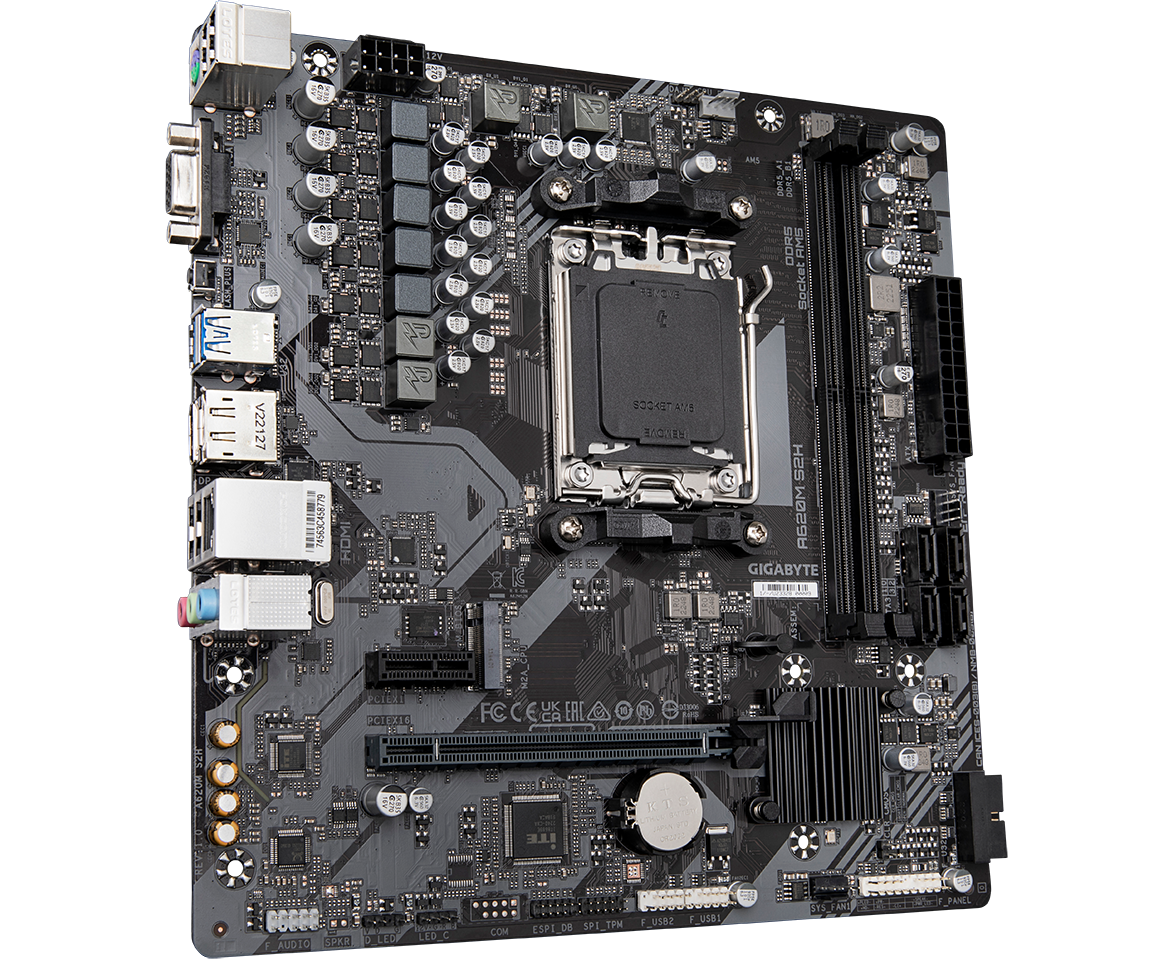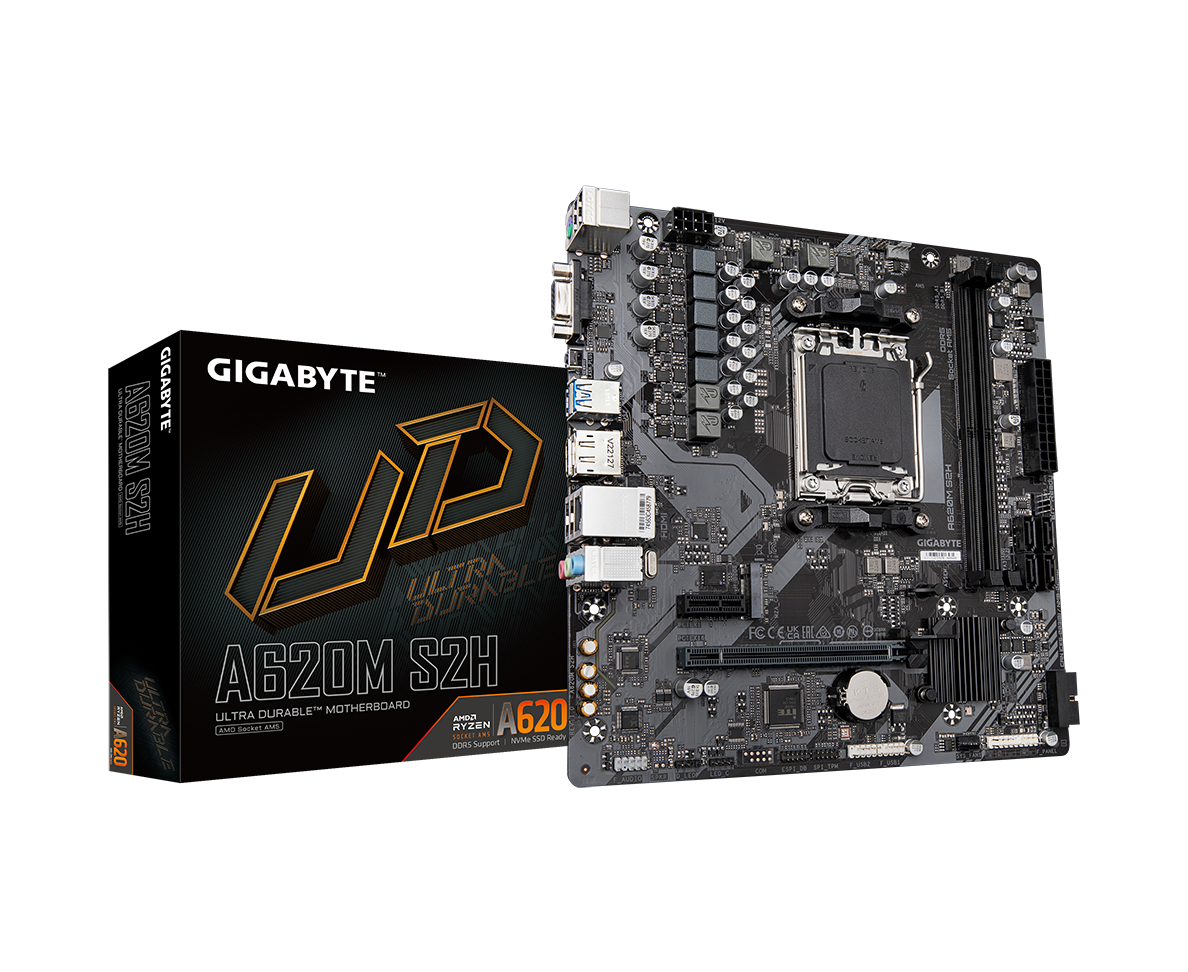 MB sAM5 Gigabyte A620M S2H, AMD A620, 2xDDR5-5200, D-SUB+HDMI+DP, 1xPCI-Ex16, 1xPCI-Ex1, 4xSATA3(RAID 0/1/10), 1xM.2, 8 Ch Audio, GLan, mATX, RTL