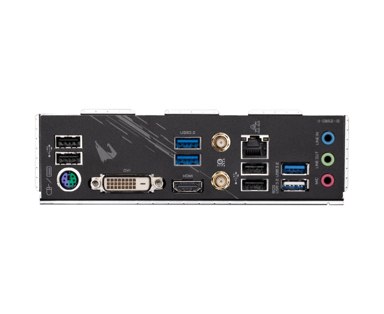 PS/2, 4 x USB 2.0, 4 x USB 3.2 Gen1, DVI, HDMI, RJ-45