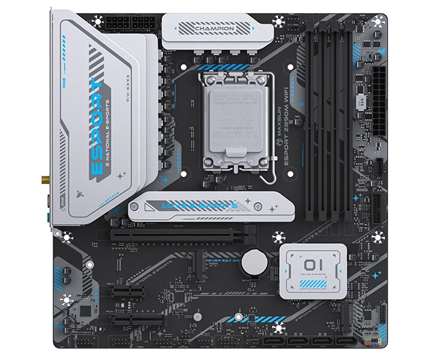 Материнская плата MAXSUN MS-eSport Z890M Wifi, LGA1851, Z890, 4*DDR5, 4*SATA3, 3*M.2, USB 3.2, USB 2.0, Type-C, 1*PCIEx16, 1*PCIex4, 1*PCIex1, HDMI+DP