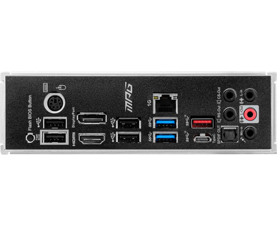 Разъёмы на задней панели : PS/2, 4 x USB 2.0, 2 x USB 3.2 Gen2, USB 3.2 Gen2x2, USB 3.2 Gen2 Type-C, HDMI, DisplayPort, RJ-45, S/PDIF (оптический)