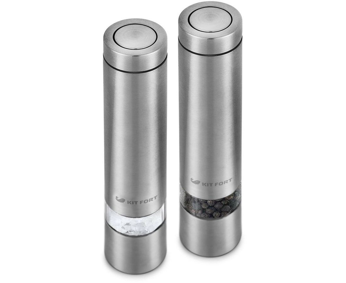 Набор мельниц Kitfort KT-2028 измельчает перец-горошек, соль и другие специи. Нет нужды молоть специи впрок. Мельница одновременно мелет и дозирует. Поместите её над блюдом и просто нажмите кнопку.
