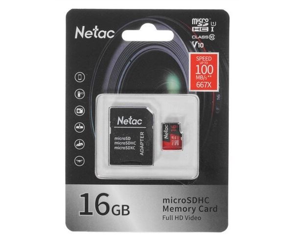 MicroSD 16GB Netac P500 Extreme Pro Class 10 UHS-I U1 V10 (100 Mb/s) + SD адаптер