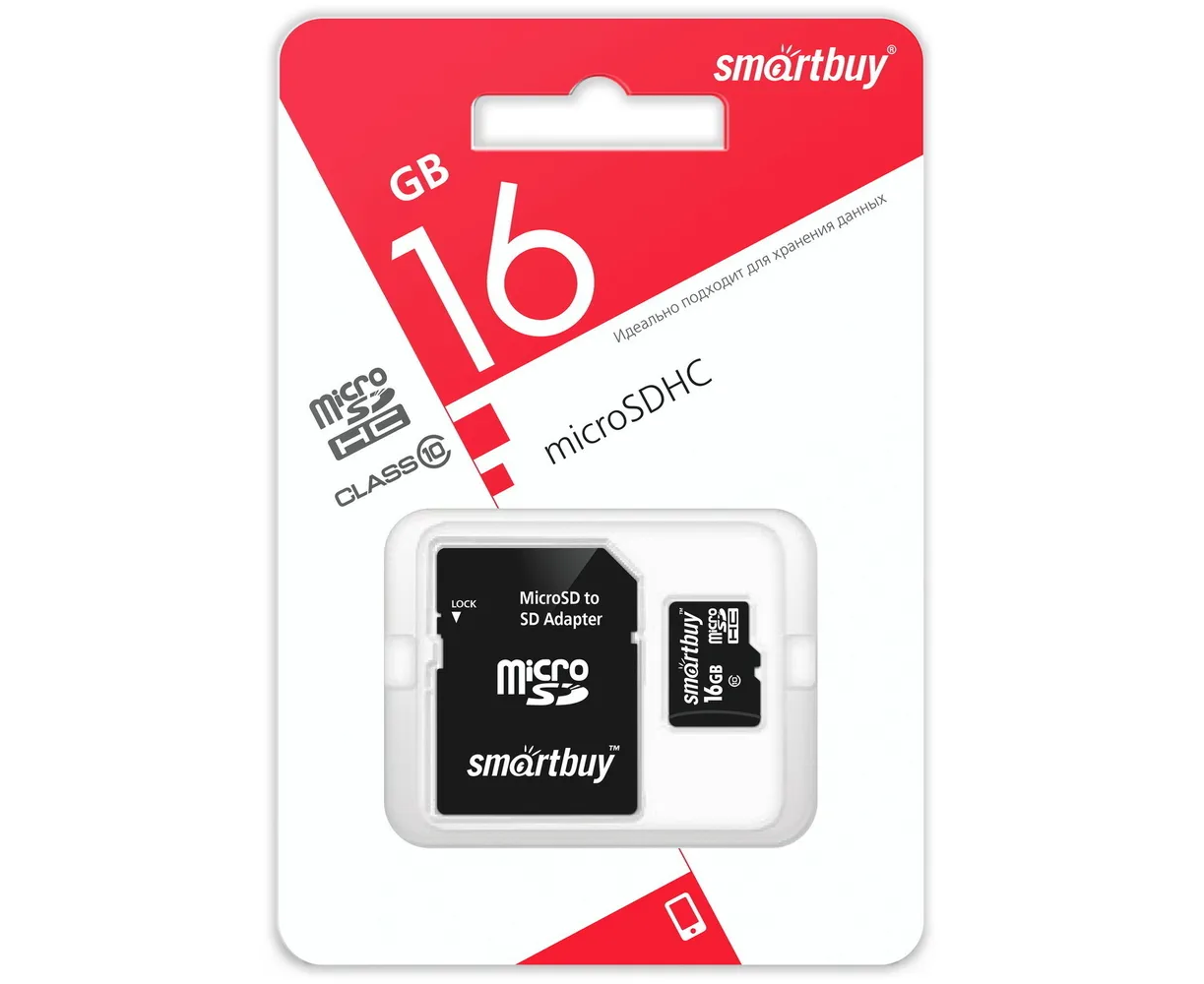 MicroSD 16GB Smart Buy Class 10 UHS-I + SD адаптер