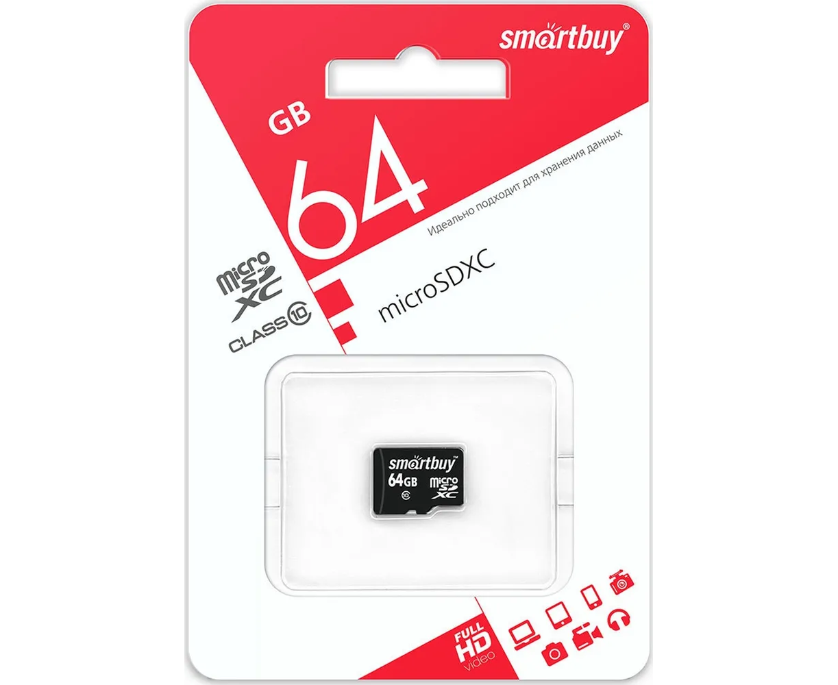 MicroSD 64GB Smart Buy Class 10 без адаптера