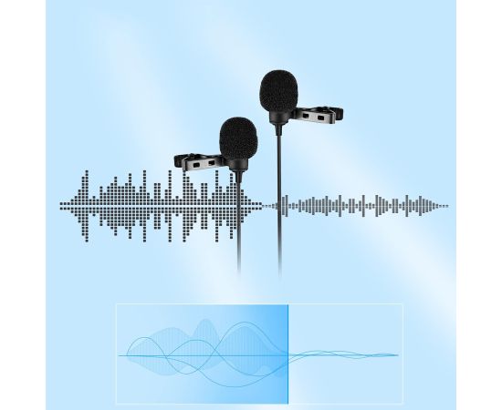 Микрофон CANDC DC-C2 Pro двойной, петличный, Jack 3.5mm, 6 м, черный, электронный конденсатор