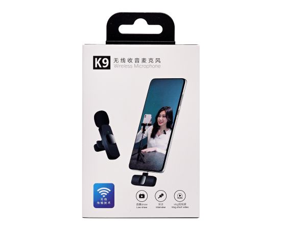 Микрофон - K9 с прищепкой для телефона, Type-C (black) (209935)