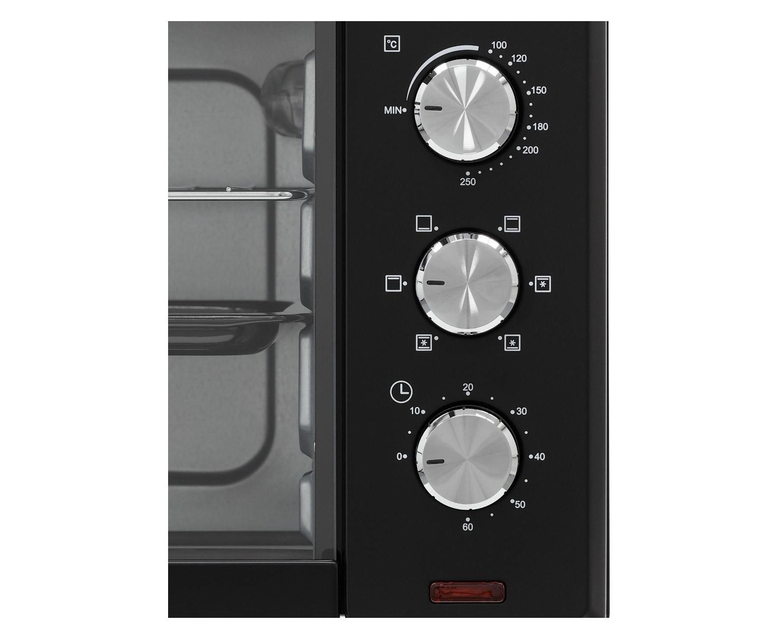 Большой объем. Противень с ручкой в комплекте. Плавная регулировка температуры. 6 режимов работы с конвекцией.