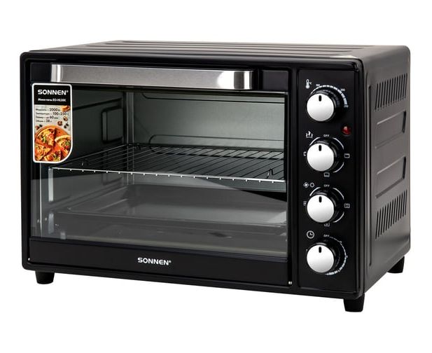 Мини-печь SONNEN EO-HL38K (458306) 2000Вт, 38л, 3 режима нагрева, режим конвекции, таймер, механическое управление, черная