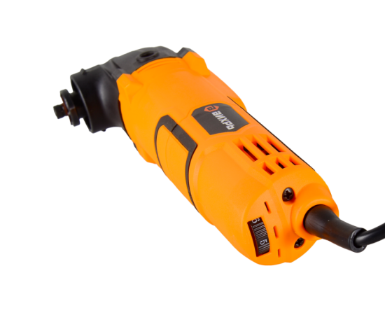 Мощность двигателя 400 Вт. Для разного вида работ в реноваторе на конце рукоятки предусмотрен регулятор скорости колебаний от 13 000 до 22 000. Угол колебаний 3°.