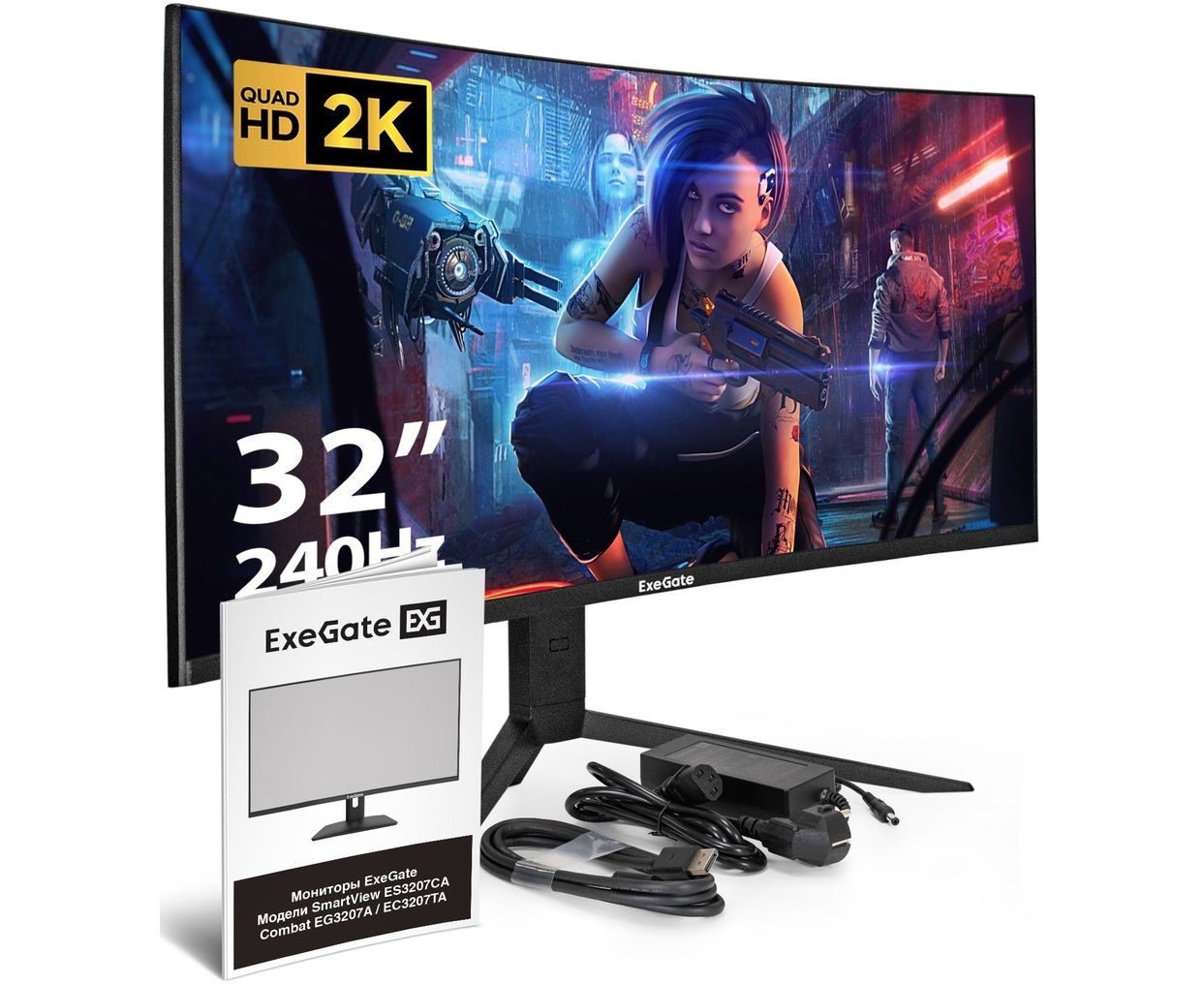 Монитор ExeGate EC3207TA Combat (EX297503RUS) 31.5" VA LCD Curved 2560x1440 240Hz 1ms 300cd 3000:1 178/178 HDMI 2xDisplayPort USB HAS pivot