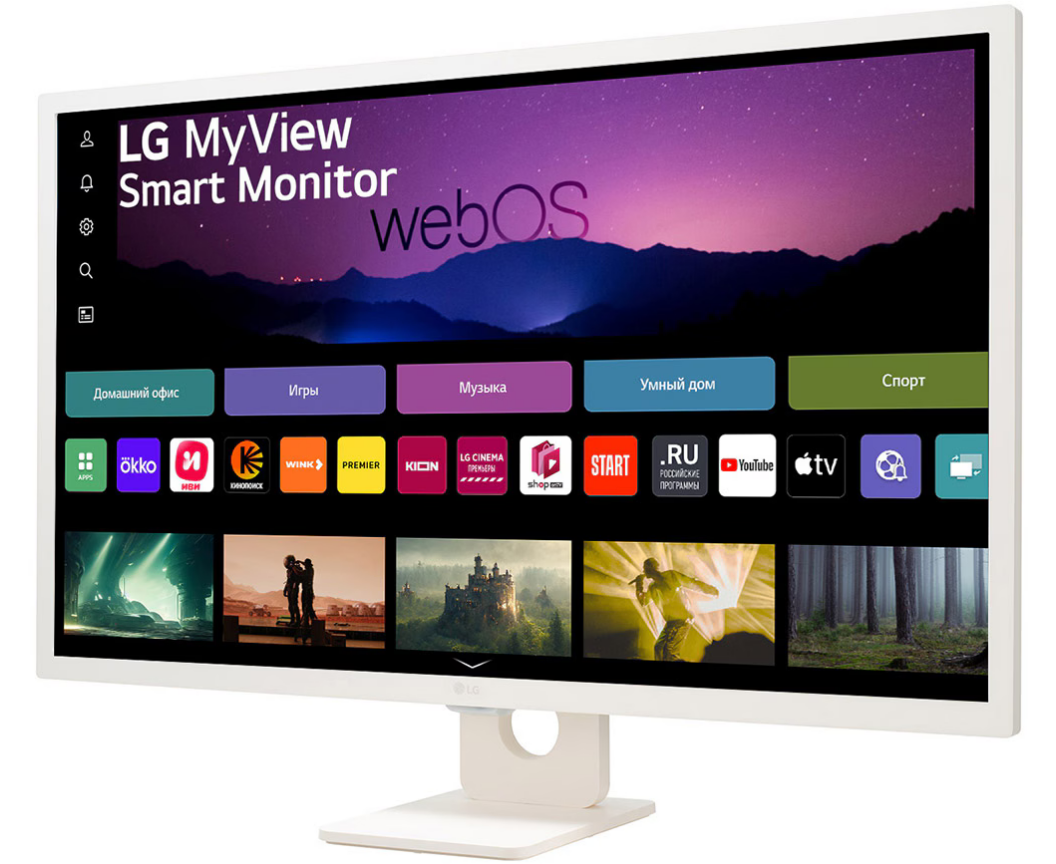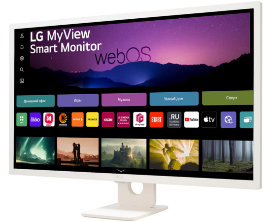 Монитор LG MyView 32SR50F-W LCD 31.5'' FHD Smart Monitor, IPS, 250cd/m2, 16:9, 5мс (GtG), 1200:1, 60Hz, 178/178, speakers 5Wx2, внешний БП, 2xHDMI