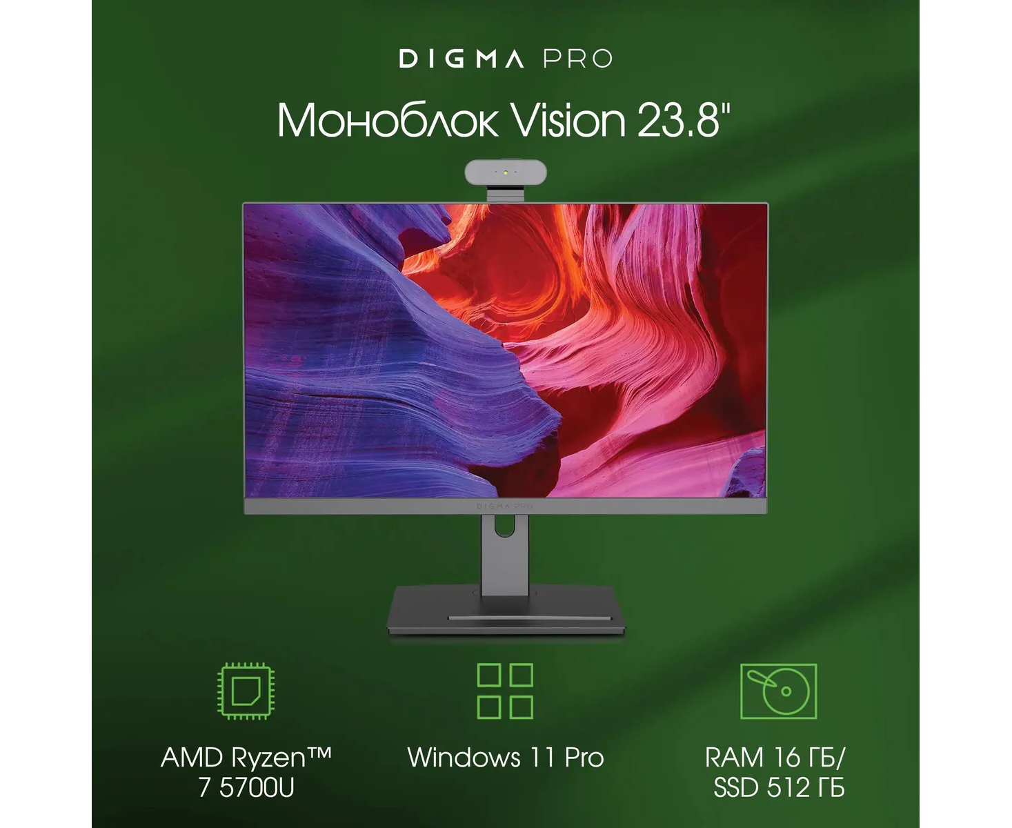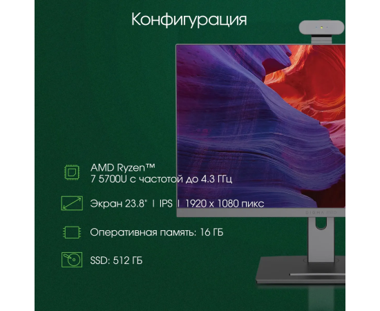 Моноблок DIGMA Pro Vision DM23R7-ADXW01 23.8" Full HD, AMD Ryzen 7 5700U, 16ГБ DDR4, 512ГБ SSD, Windows 11 Professional, черный