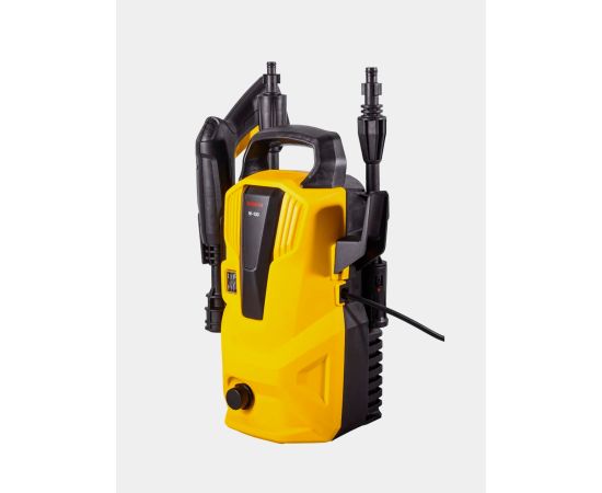 Мини-мойка имеет компактные размеры и небольшой вес, поэтому она отличается хорошей мобильностью, ее удобно транспортировать. Комплектуется шлангом высокого давления длиной 5 м, а также пистолетом-распылителем, который имеет защиту от случайного пуска. Чтобы добиться быстро желаемого результата или повысить качество чистки, можно использовать специальные шампуни для бесконтактной мойкии другие аксессуары. Интуитивно понятное подключение делает эксплуатацию прибора простым и удобным.