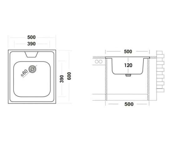 Мойка Ukinox ECO 500.600 российского производства, изготовлена из нержавеющей стали AISI 430 толщиной 0,4 мм, состоит из одной чаши и производится с видом поверхности матовый металл. Угол корпуса мойки не заварен.