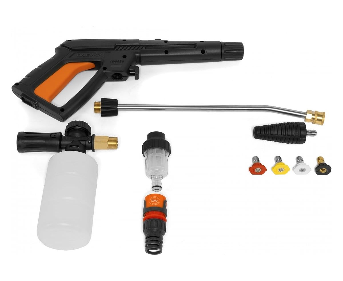 Мойка высокого давления DAEWOO DAW 625 поможет без особого труда добиться идеальной чистоты и блеска там, где присутствуют загрязненные поверхности.