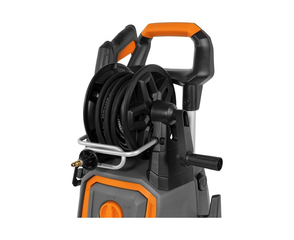 -Барабан для шланга Позволяет аккуратно хранить 8 метров шланга Облегчает размотку шланга, до необходимой длины Шланг высокого давления аккуратно наматывается на барабан, благодаря направляющей