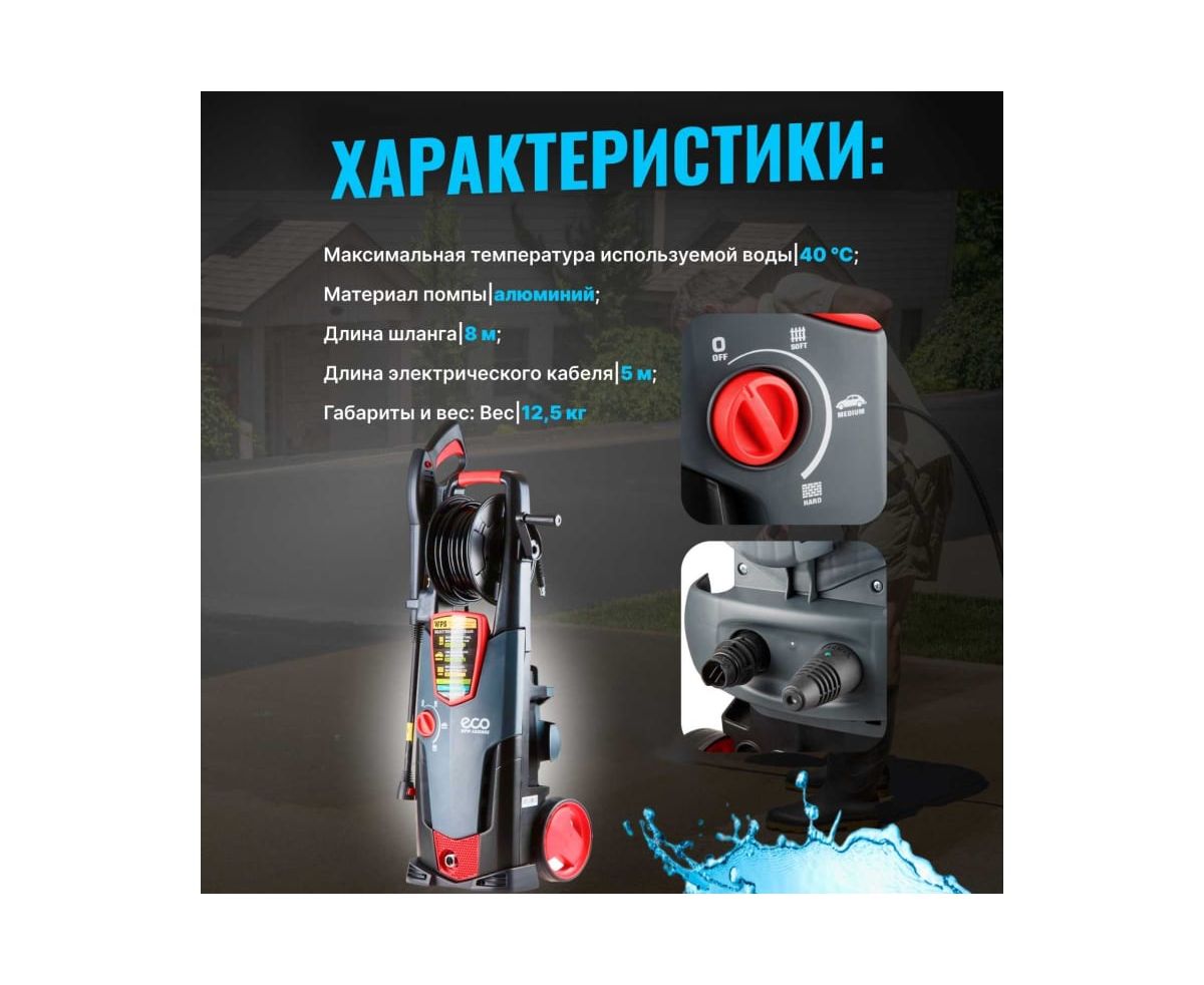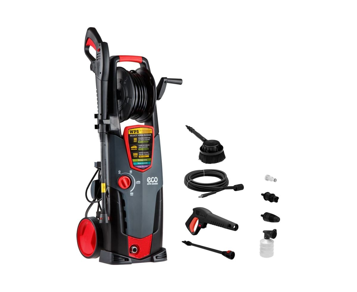 Мойка высокого давления ECO HPW1825RSE01 подходит для очистки садовой мебели, велосипедов, автомобилей, садовых инструментов, стен и фасадов зданий.