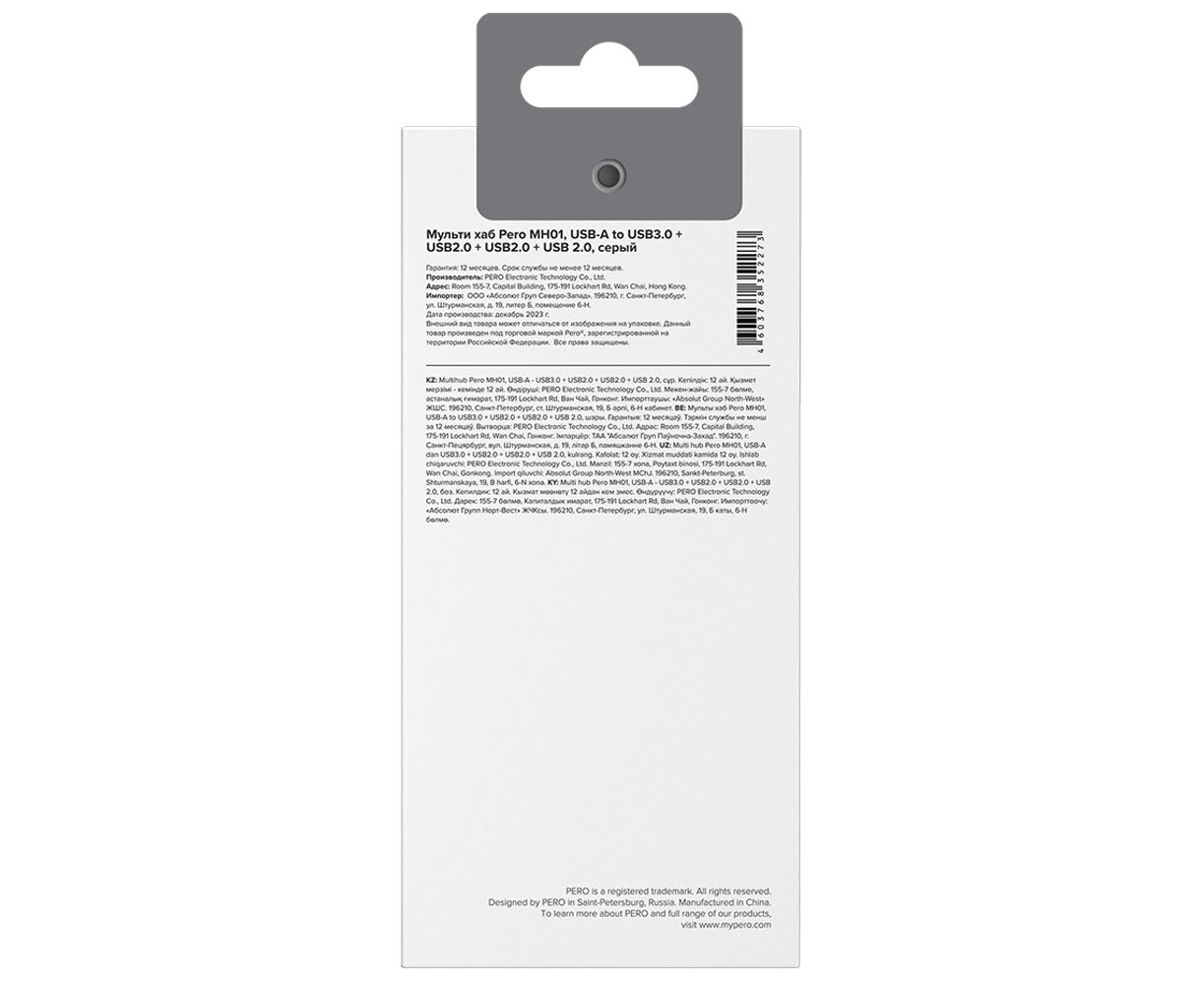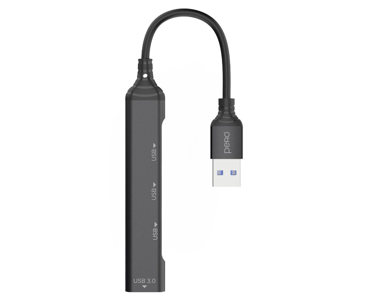 Мульти Хаб PERO MH01, USB-A TO USB 3.0+USB 2.0+USB 2.0+USB 2.0, серый