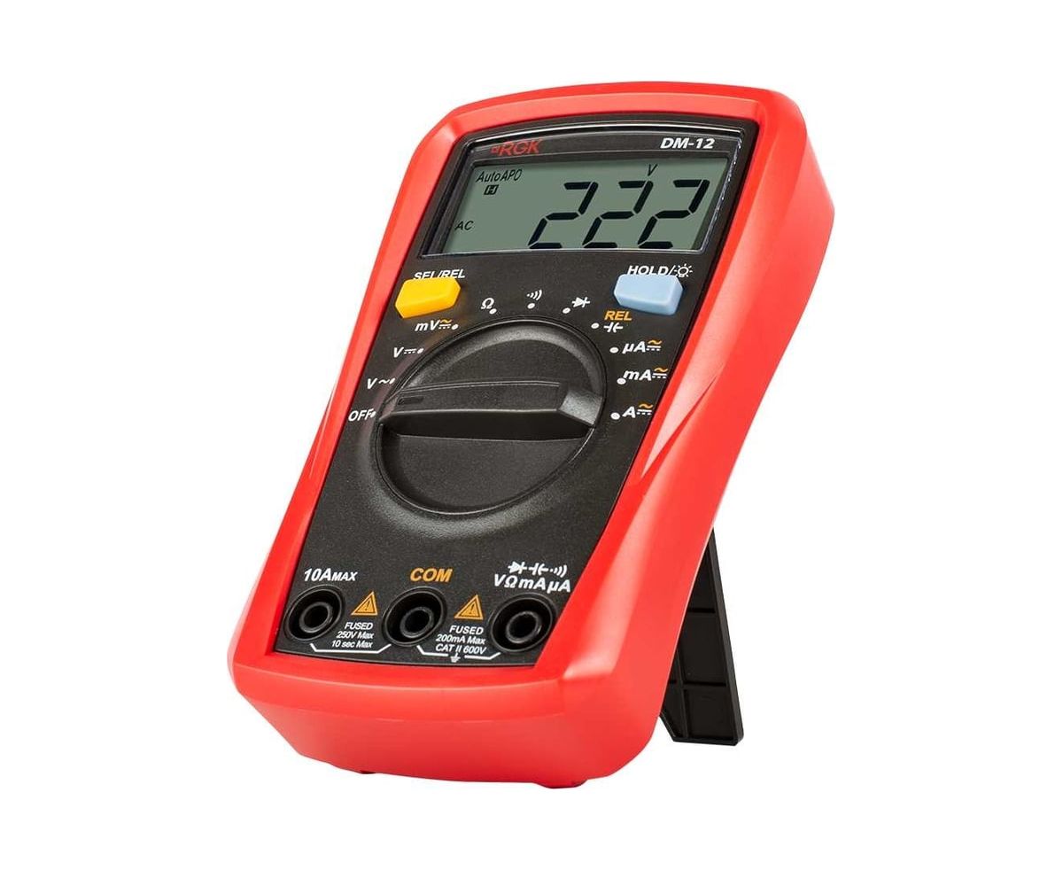 Портативный мультиметр RGK DM-12 измеряет такие параметры электрических сетей и оборудования, как сила тока, сопротивление и напряжение. Этот надежный прибор используется для быстрой прозвонки цепей, диагностики различных неисправностей, определения емкости конденсаторов, проверки работоспособности диодов. Одно из преимуществ модели - режим относительных замеров REL. Устройство может решить множество бытовых и профессиональных задач в сферах строительства, ремонта, обслуживания электронной техники и др.