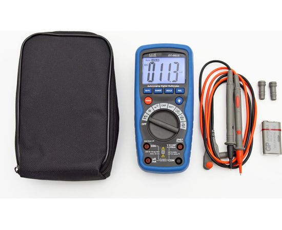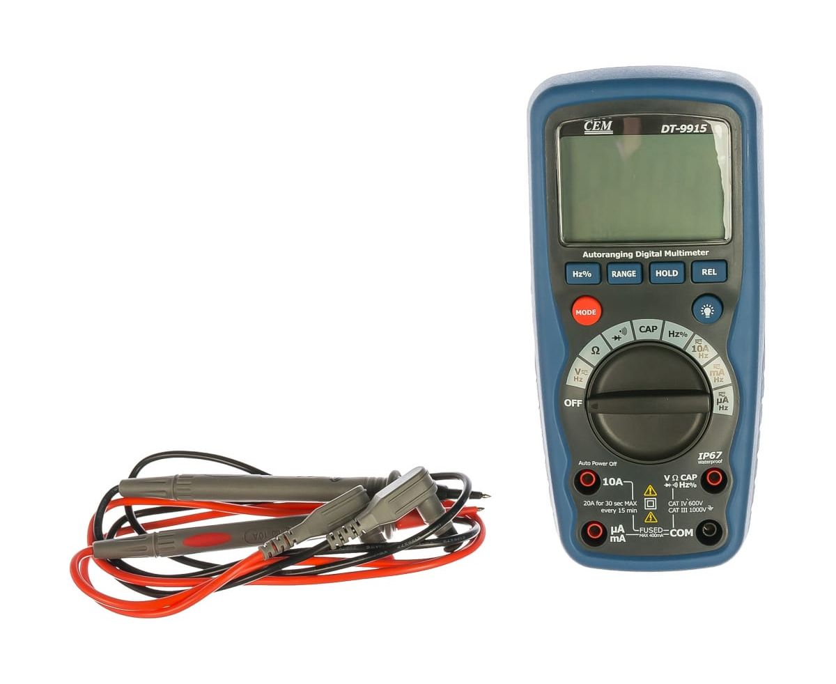 Мультиметр СЕМ DT-9915 482018 поставляется со всем необходимым для проверки правильной работы электроцепи. Контрастный ЖК-дисплей с 4000 отсчетов обеспечивает комфортное считывание показаний. Максимальное значение напряжения составляет 1000 В. Полярность подключения элементов цепи определяется в автоматическом режиме.