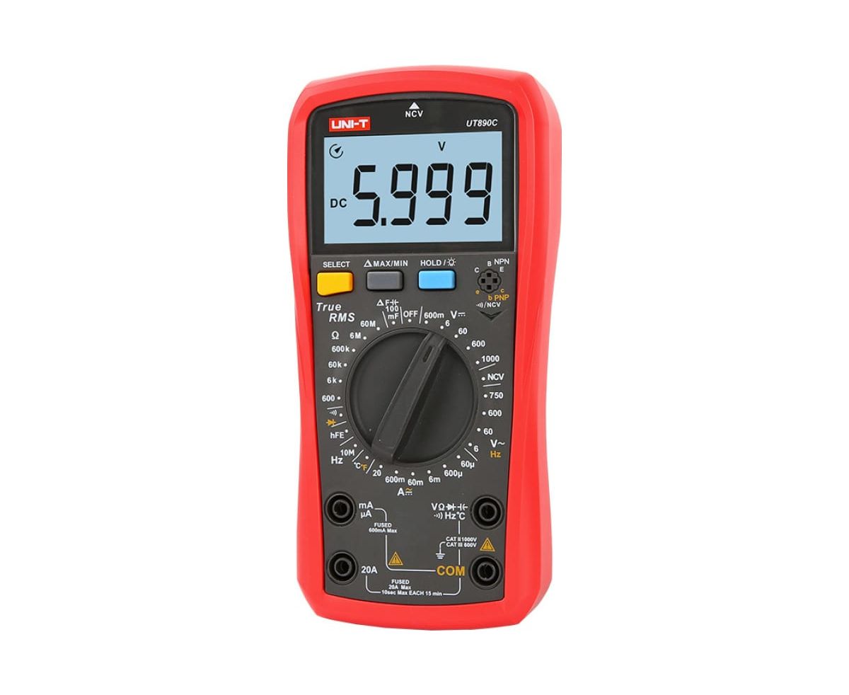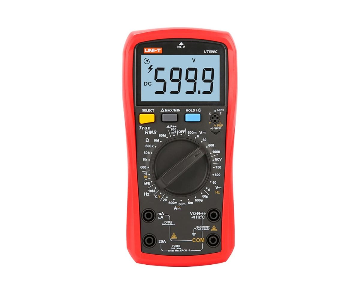 Цифровой универсальный мультиметр UNI-T UT890C 00-00007396 с большим ЖК-дисплеем разрядностью 6000. Имеет звуковое и световое оповещение.