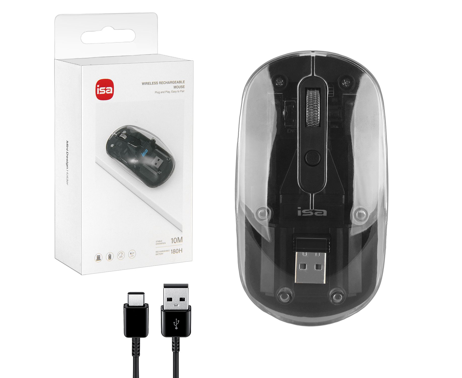 Мышь беспроводная (2.4G, Bluetooth) WM-8 ISA (Прозрачно-черная)