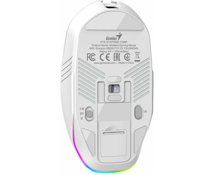 Мышь беспроводная Genius Scorpion M58250, RGB, Al opilot, 800/1600/2400/3200 DPI, white