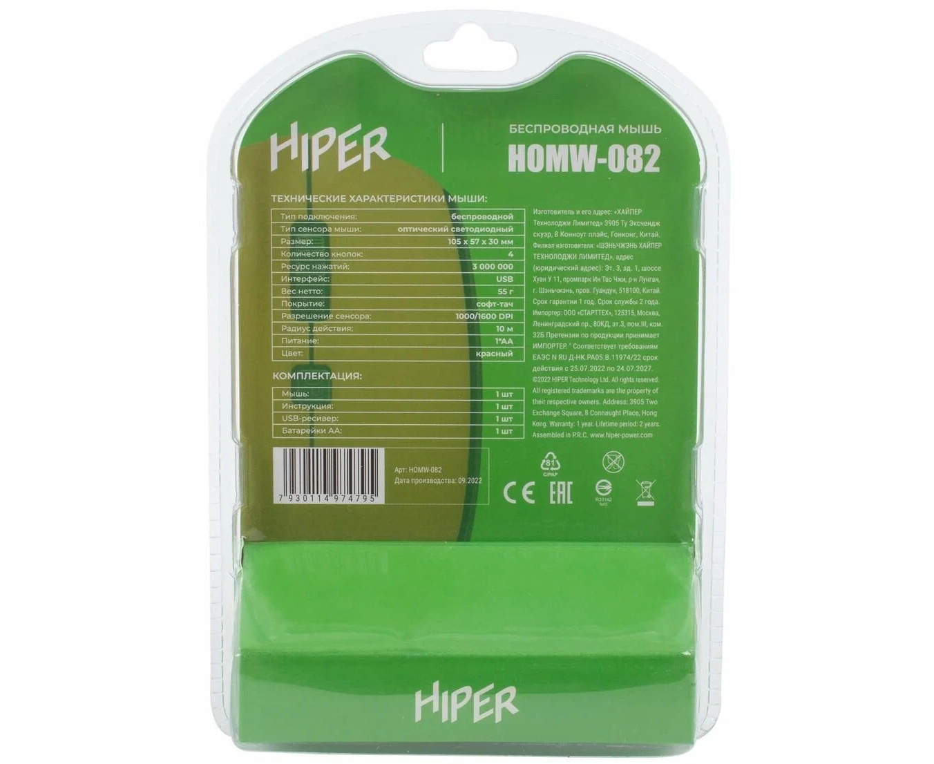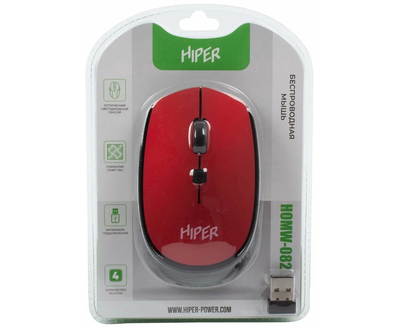 Мышь беспроводная HIPER HOMW-082 1600dpi, красный