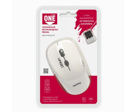 Мышь оптическая беспроводная Smart Buy SBM-344CAG-WG ONE с зарядкой от USB (white/grey)