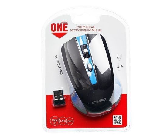 Мышь оптическая беспроводная Smart Buy SBM-352AG-BK ONE (blue/black) (91289)