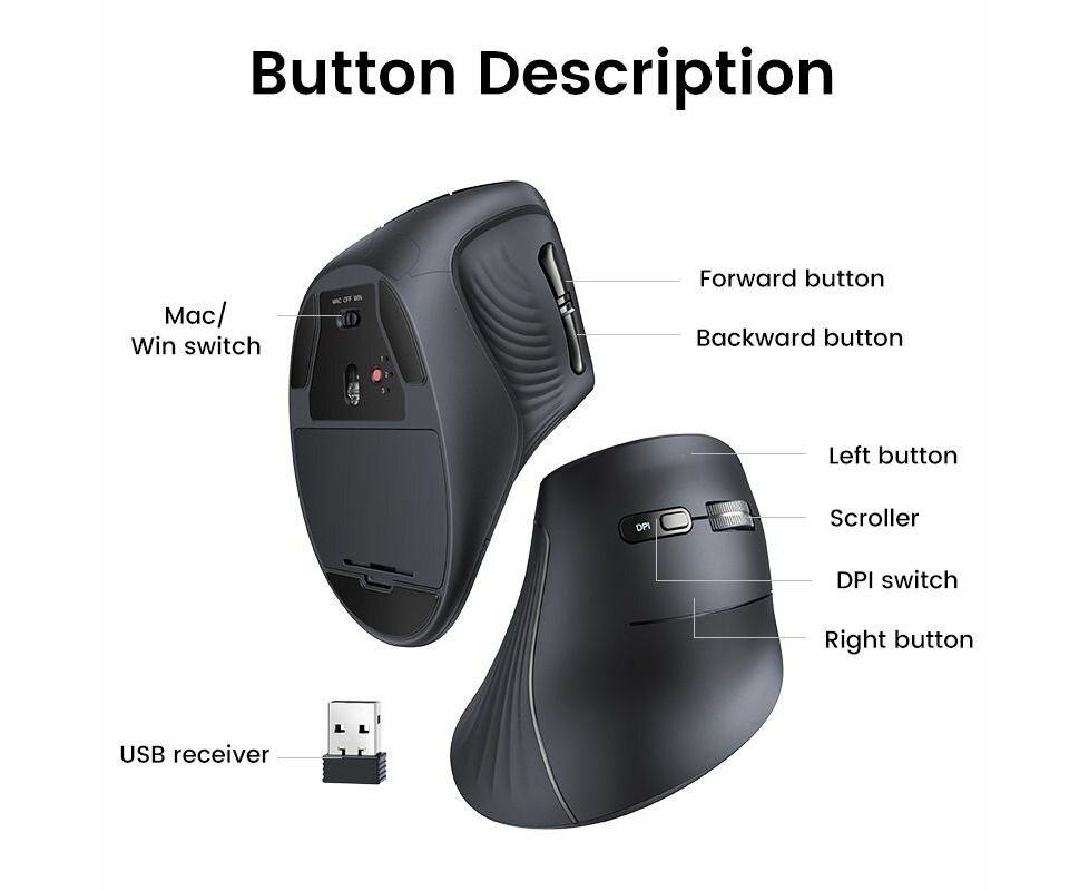 Мышь UGREEN MU008 (25444) Wireless Vertical Mouse Black
