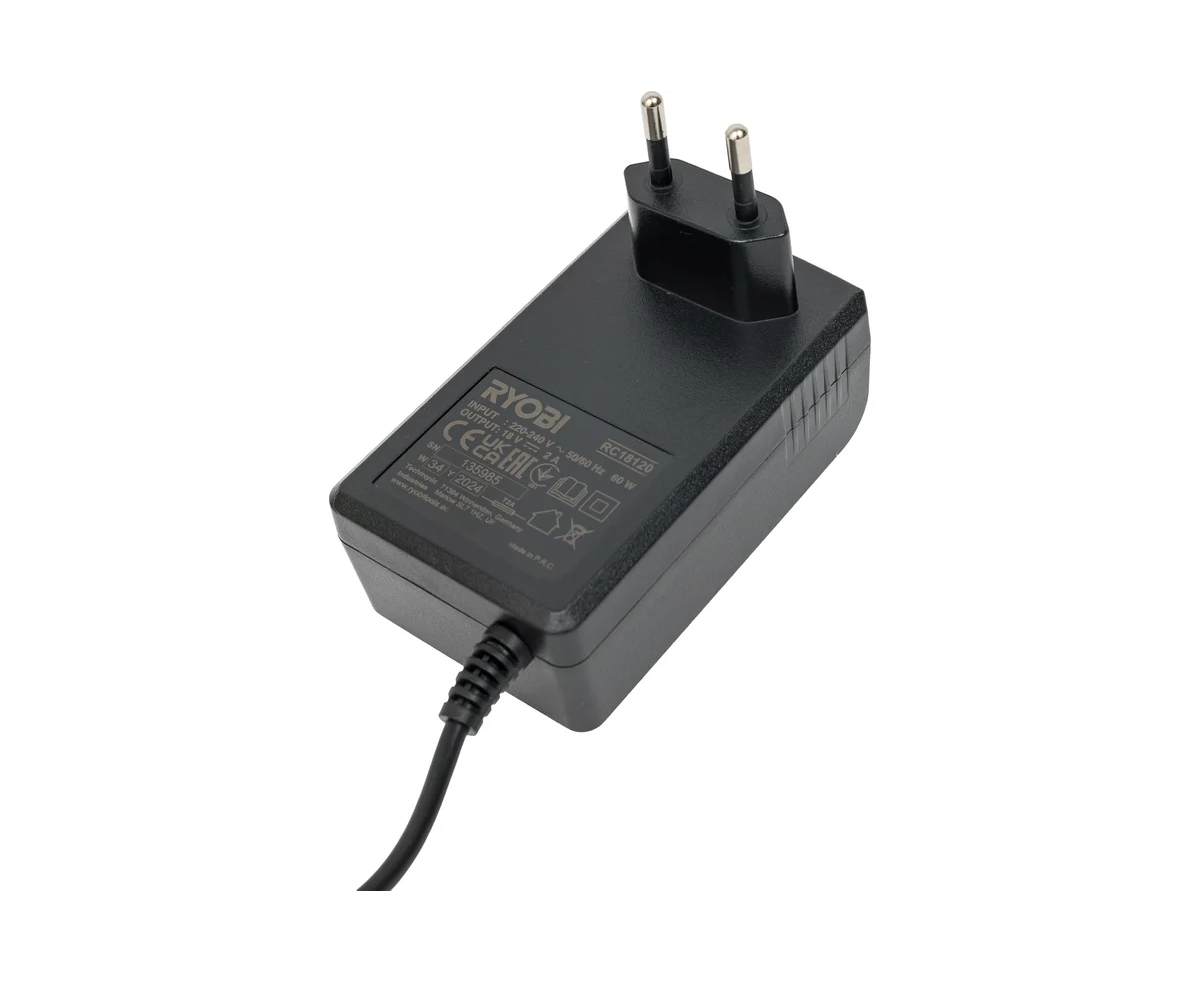 - Универсальное зарядное устройство позволяет доукомплектовывать набор любым аккумулятором Ryobi 18В