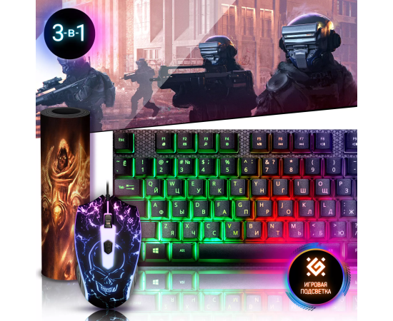Набор игровой DEFENDER Aura MKP-117 Light, мышь + клавиатура + ковер