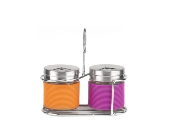 Набор для специй LARA выполнен в ярком современном дизайне. Это практичный аксессуар для ежедневной сервировки стола. В комплект входит устойчивая проволочная подставка из экологичной высококачественной нержавеющей стали с матовой полировкой. Конструкция с удобным кронштейном для переноски и двумя отделениями для хранения емкостей для специй. Солонка и перечница выполнены из прозрачного стекла с яркими накладками из мягкого нейлона с эффектом Soft-touch. Удобный контроль уровня наполнения. Съемные крышки с возможностью прикрыть отверстия для специй, чтобы они не выдыхались и не отсыревали. Можно мыть в посудомоечной машине.