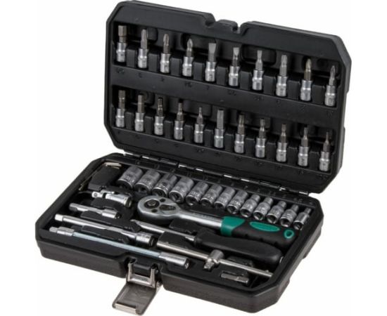 Набор инструментов ВОЛАТ 1/4" 6 граней, 46 предметов 18550-46 предназначен для ремонта и обслуживания автомобиля. Рабочие части инструментов изготовлены из инструментальной стали, что обеспечивает прочность и долговечность. Сатинированное покрытие придает инструмент антикоррозийную стойкость. Инструмент упакован в кейс из прочного противоударного пластика, с металлическими замками, что позволяет удобно и надежно хранить инструмент.