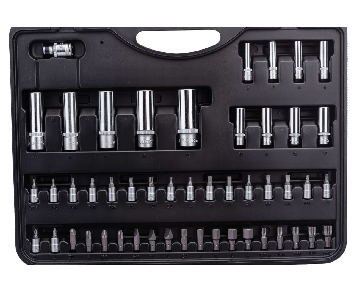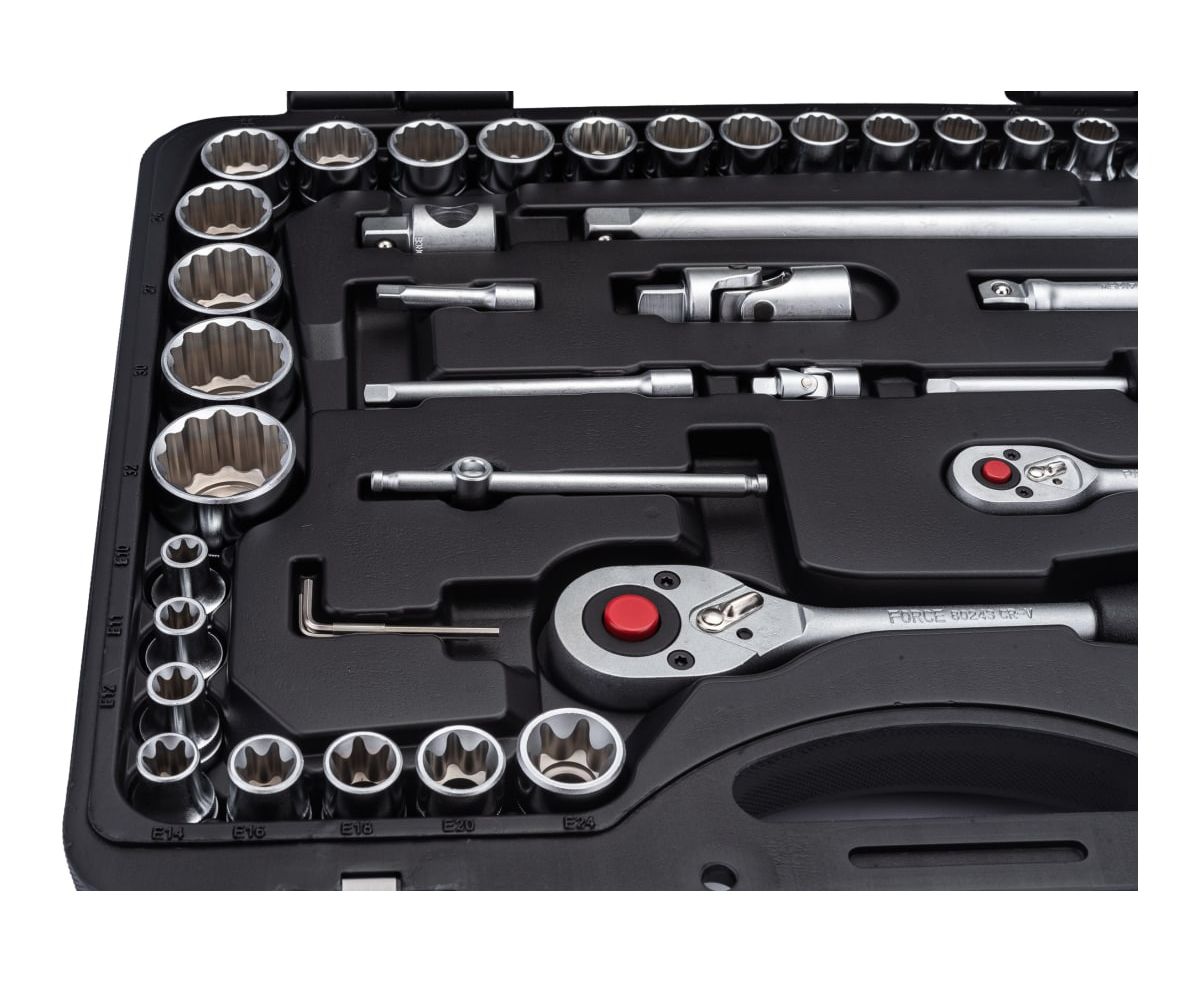 Набор головок и приспособлений Force 41082R-9 12-ти гран.1/2, 1/4 108 предметов