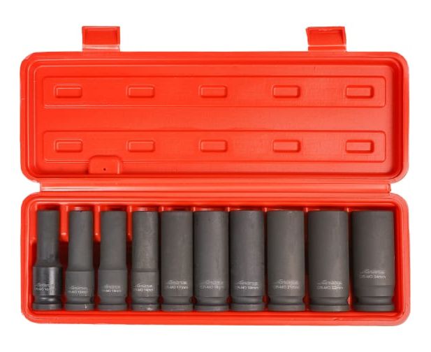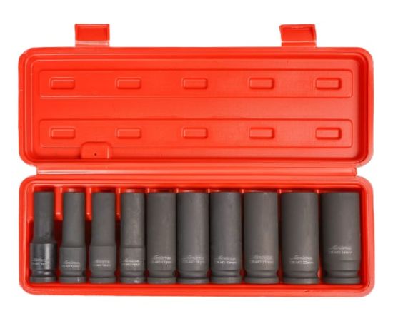 Набор головок ударн. 1/2" 78мм 10 пр. (10,12,13,14,17,18,19,21,22,24мм) пласт. кейс AIRLINE ATAS048 Материал - сталь 42CrMo Твердость - 45-49 HRC Покрытие - фосфатирование Предназначены для работы с пневматическим и ручным инструментом.