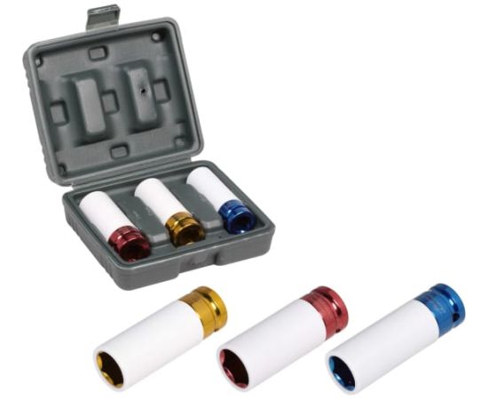 Набор головок ударных для колёсных дисков 1/2" DR шестигранных удлинённых 3 предм. (17,19,21мм) AIRLINE AT-IS12-41 Материал - сталь 42CrMo Твердость - 45-49 HRC Покрытие - гальванизация Предназначены для работы с пневматическим и ручным инструментом.