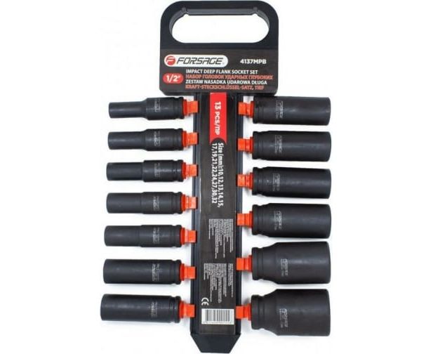 Набор головок ударных глубоких на пластиковом держателе F-4137MPB 13 шт, 1/2 Forsage 50480 широко применяется на специализированных СТО, а также в гаражных условиях.