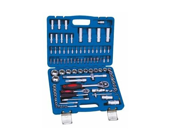 1/2": 10, 11, 12, 13, 14, 15, 16, 17, 18, 19, 20, 21, 22, 23, 24, 27, 30, 32 мм; трещотка 1/2": 24 зуба; удлинитель 1/2": 125, 250 мм; длинные 1/2": 14, 15, 17, 19 мм; свечные 1/2": 16, 21 мм; 1/4": 4, 4.5, 5, 5.5, 5, 6, 7, 8, 9, 10, 11, 12, 13, 14 мм; длинные 1/4": 6, 7, 8, 9, 10, 11, 12, 13 мм; с битами 1/4": Т8, Т10, Т15, Т20, Т25, Т30, H3, H4, H5, H6, SL3, SL3.5, SL7, PH1, PH2, PZ1, PZ2; вороток т-образный 1/4": 115 мм; карданный шарнир 1/4"; трещотка 1/4": 24 зуба; удлинитель 1/4": 50, 100 мм; гибкий удлинитель 1/4"