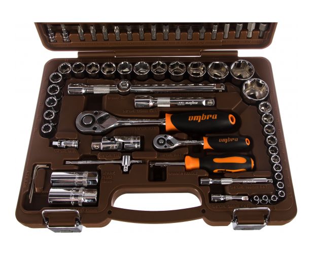Универсальный набор инструмента применяется для крепежных работ. В удобном пластиковом кейсе компактно расположено 94 предмета. При правильных условиях эксплуатации, компания Ombra дает пожизненную гарантию на инструменты.