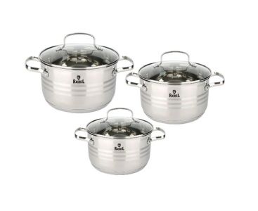 Кастрюли торговой марки "RASHEL" выполнены из высококачественной нержавеющей стали (18/10 - соотношение хром/никель). Кастрюли удобны в использовании, за ними легко и просто ухаживать. Многослойное капсульное дно равномерно распределяет тепло и долгое время сохраняет достигнутую температуру, тем самым обеспечивает равномерный нагрев и равномерную подачу тепла во внутрь кастрюли.