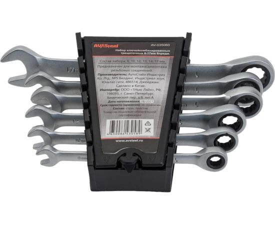 Набор ключей комбинированных AV Steel AV-035060 трещоточных 6 предм.