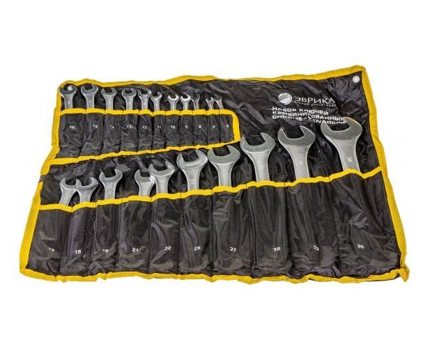 Набор комбинированных ключей 6-36мм Chrome vanadium сатинированных планшет ЭВРИКА ER-10210 позволяет монтировать и демонтировать шестигранный крепеж различной сложности.
