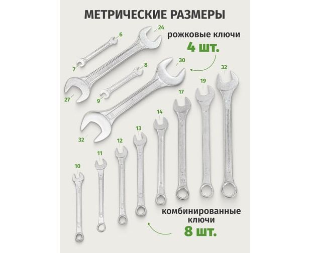 Набор ключей комбинированных и рожковых Помощник 5198(57293) 12пр.