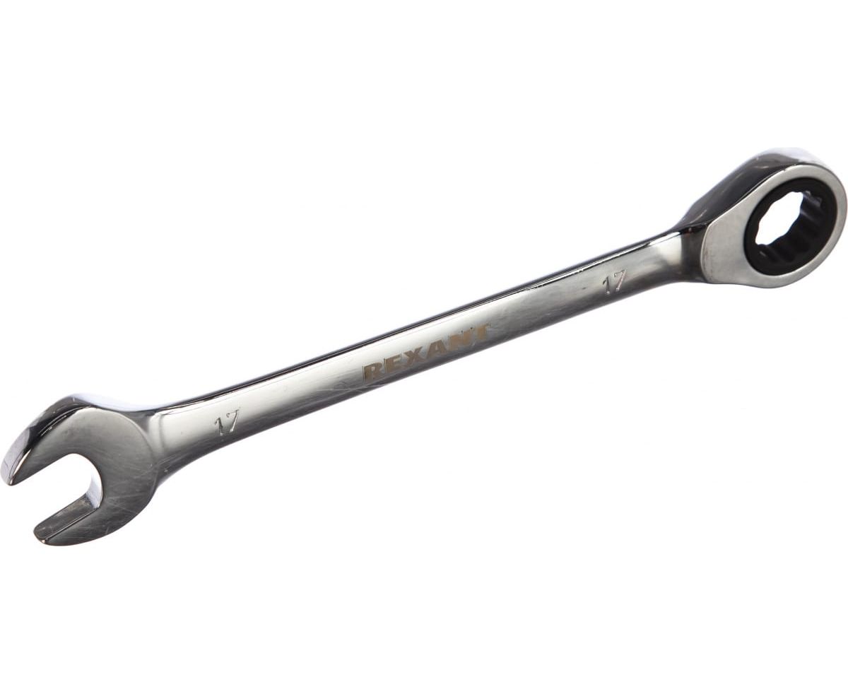 Набор ключей комбинированных REXANT 12-4841-1 трещоточных (8, 10, 13, 17, 19мм), 5шт, CrV, зеркальное хромирование