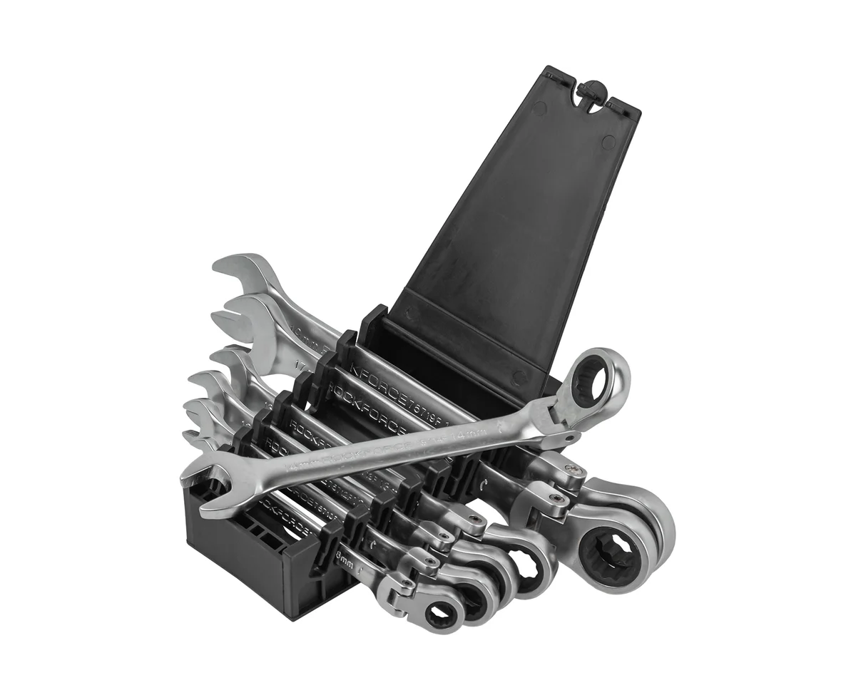 - Набор комбинированных трещоточных ключей с шарниром Rockforce 7пр. RF-51072F(46764) отличается антикоррозийностью